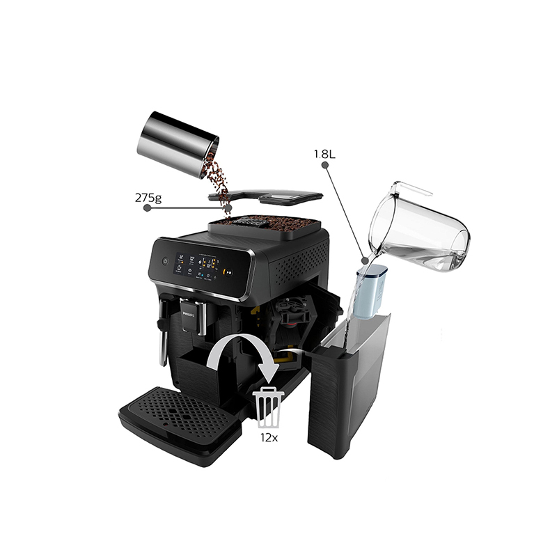 طحن حبوب البن مع ماكينة اسبريسو فيليبس EP2220