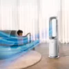 بالإضافة إلى تنقية الهواء، يعمل جهاز AMF765/30 أيضاً كمروحة تبريد. يقوم نظام تدوير الهواء بزاوية 360 درجة بتقنية DualFlow بإرسال الهواء النقي والمنقى إلى جميع أنحاء الغرفة. يمكن ضبط سرعة المروحة على خمسة مستويات، وفي وضع التربو، يصل معدل دوران الهواء إلى 1790 متر مكعب في الساعة. هذه الميزة تجعل من الممكن الاستمتاع بنسيم بارد وهواء نقي في نفس الوقت خلال المواسم الحارة.